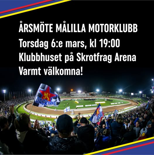 Torsdagen 6 mars klockan 19:00 är det dags för årsmöte som hålls i klubbhuset på Målilla motorstadion. Ingen föranmälan behövs och vi vill givetvis att så många medlemmar som möjligt dyker upp.